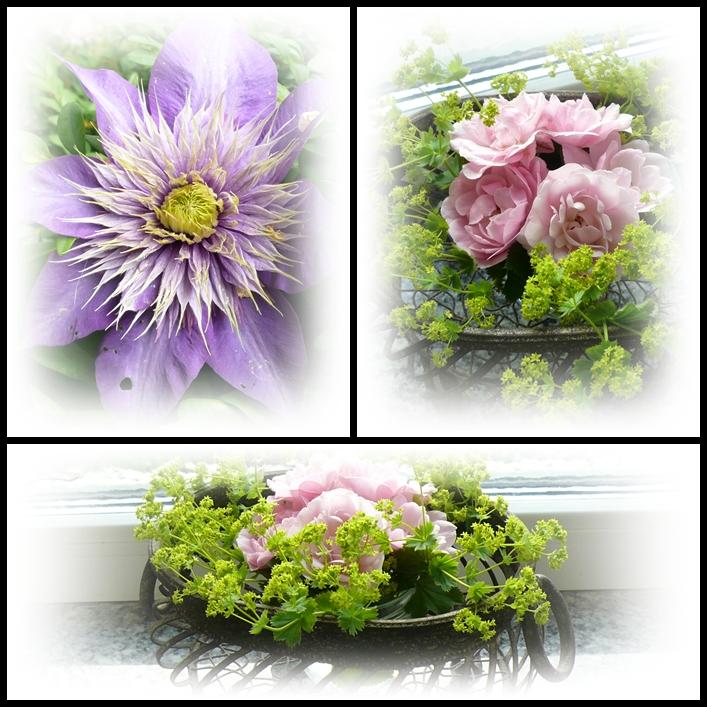 Clem. Multi Blue und Bonica 82 mit Frauenmantel.