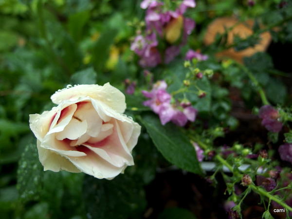 Und vorige Woche hab ich mich in die Delbard-Rose Rose de Cisterciense verguckt, die macht nun einen tollen Übergang zwischen Bernsteinrose und Perennial Blue!
