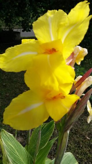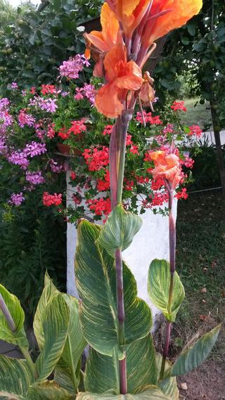 so sieht meine im Beet gepflanzte Stuttgart aus,die Blüten dahinter gehören aber zu einer anderen Canna