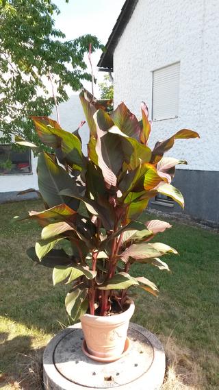 Fin welche meinst du mit den schönen Blättern? Die Rotblättrige oder die Grünblättrige - die ist nähmlich knapp vor dem Aufgehen, dann mache ich ein Foto von der Blüte, Namen weiß ich keinen die ist von meiner Nachbarin.