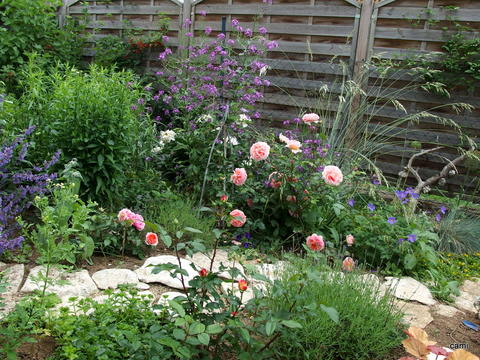 um die Augusta Luise rum hab ich noch Mutterkraut, weiße Glockenblumen, Lavendel, Phlox und Heuchera, Gewürzsalbei und Katzenminze neben bodendeckenden fetten Hennen und Hornveilchen