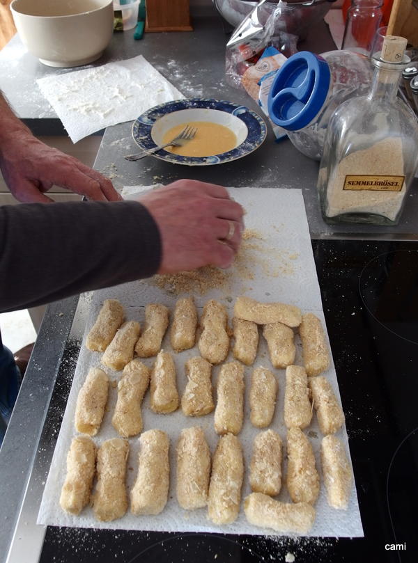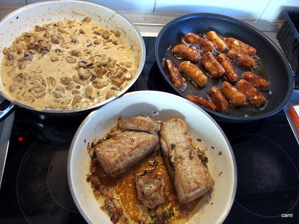 heute gab´s Schweinefilet mit Thymian, Rosmarin und etwas Knoblauch mit frischen Champignons und selbstgemachten Mandelkroketten. Für die ist GG zuständig