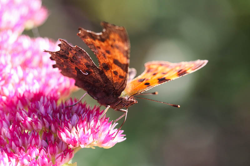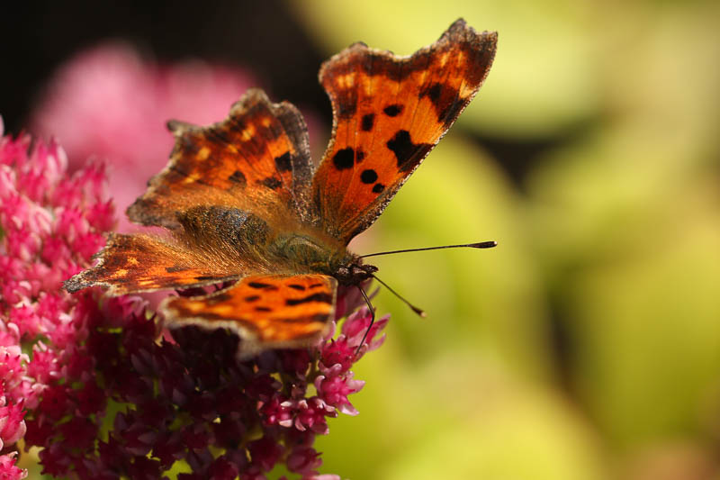 Ich habe euch mal ein Bild eines C Falters mitgebracht. Davon gibts momentan mehrere im Garten.