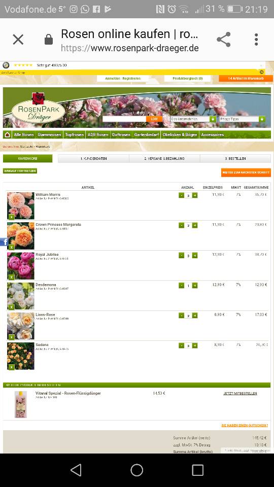 dann kann ich ja bestellen. Oh ich freue mich jetzt schon auf 6-10 neue Rosen für den Vorgarten