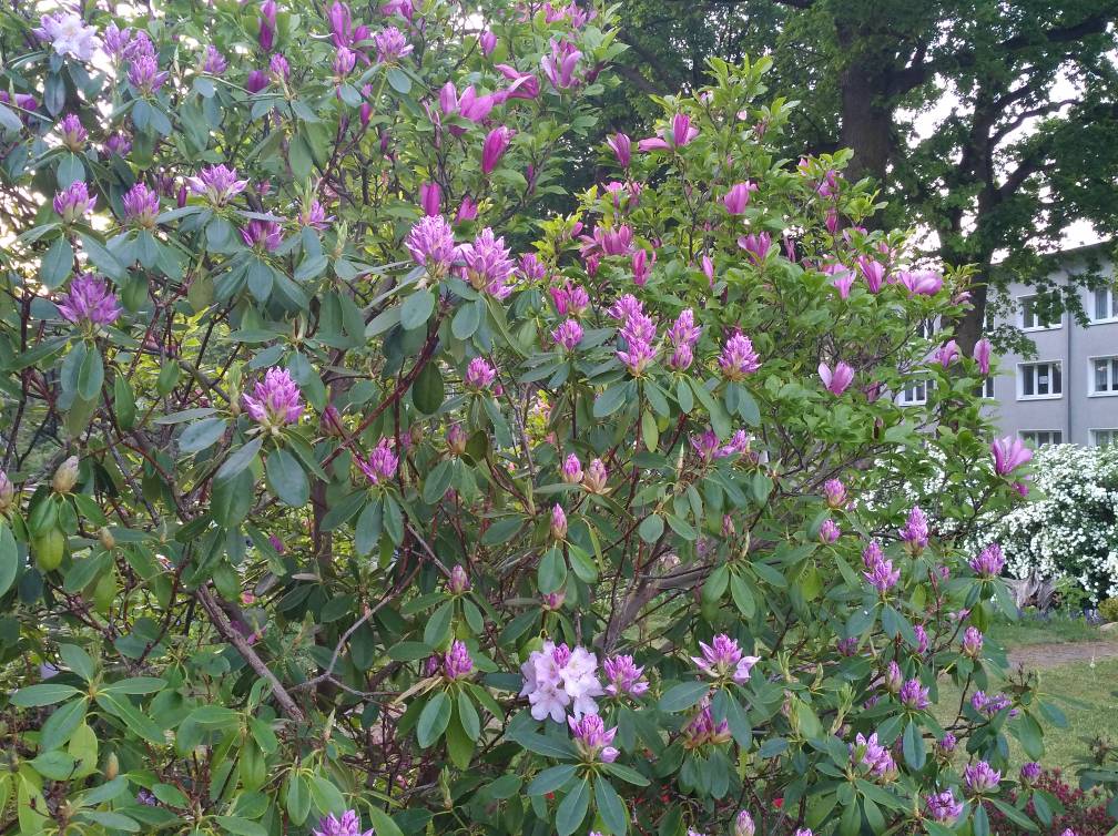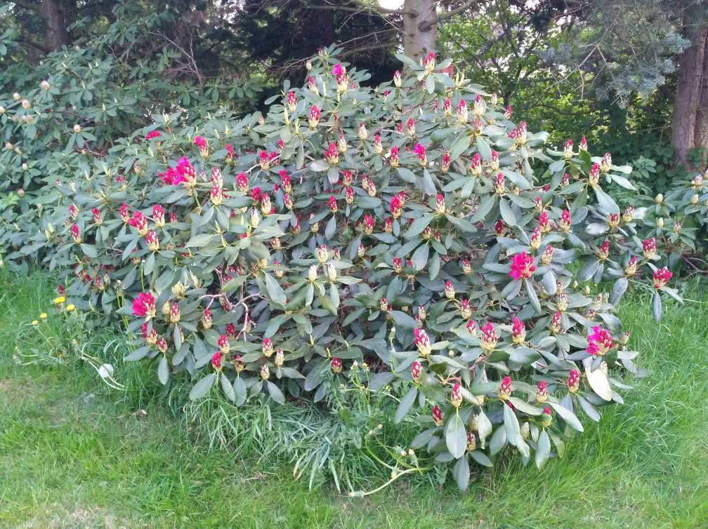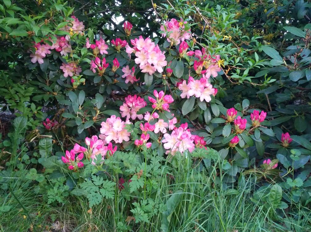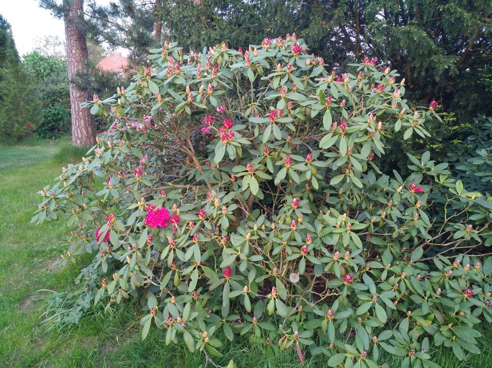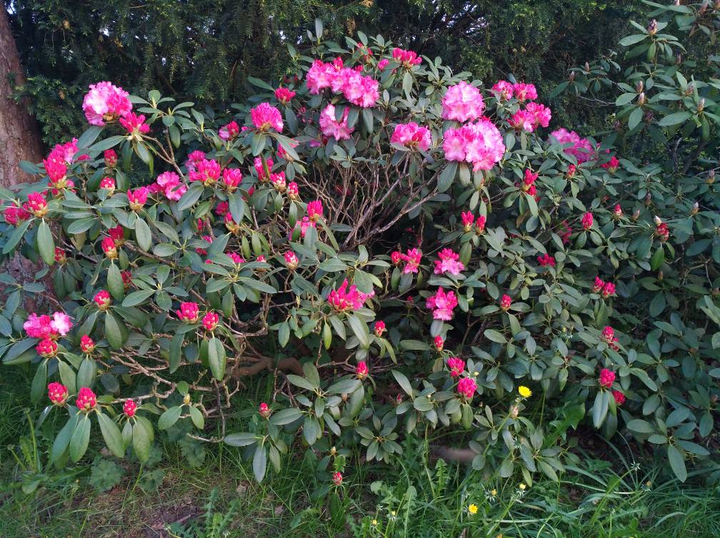 Wir haben uns letztes Jahr nach der Blüte von unseren Rhodis getrennt, zu wenig Platz und die ewige Bodenaufbereitung wollten wir auch nicht mehr (Lehmboden). Sie gingen in liebevolle Hände mit optimalen Bodenverhältnissen, stehen jetzt auf einem Waldgrundstück.