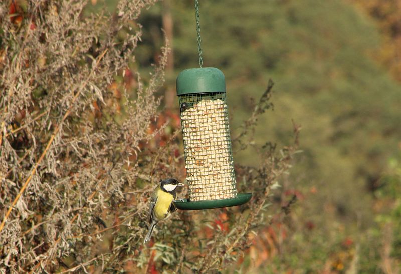 Meise, ich habe hier auf der Terrasse auch keine hohen Sträucher und Bäume und trotzdem kommen die Vögel zum Futterhaus.