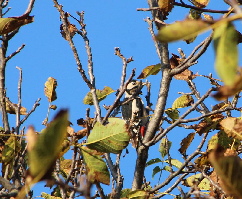 Leider bietet der Garten noch keine hohen Bäume und nur winzige Sträucher, also zu wenig für einen Rückzugsplatz für die Vögel.Heute habe ich also Futter auf den hohen Nussbaum in Nachbarsgarten gehängt.Viele große Zweige ragen in unseren Garten herüber.Meisen haben bereits die Nüsse erspäht.