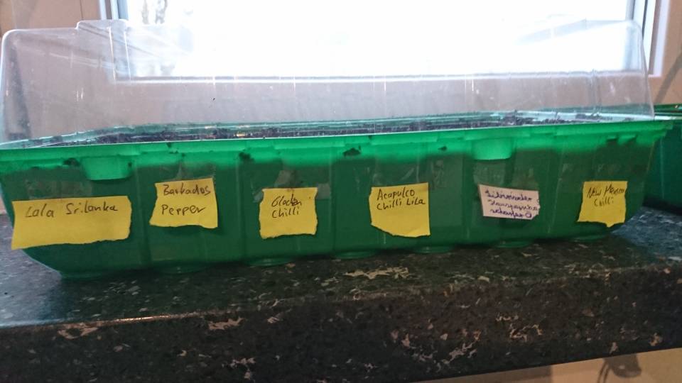 Ich hatte unter anderen verschiedene Paprika und Chili am 20. Januar im Brutkasten ausgesät.
