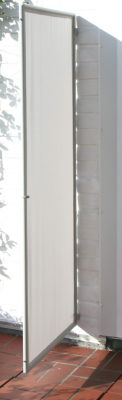 Könnt/dürft ihr an der Stelle ein Rankgerüst bauen? Das wäre vielleicht leichter im passenden Format zu halten -- im Sommer könntet ihr Bohnen oder irgendwelche Blühpflanzen dran wachsen lassen, im Winter wäre trotzdem Windschutz gegeben.