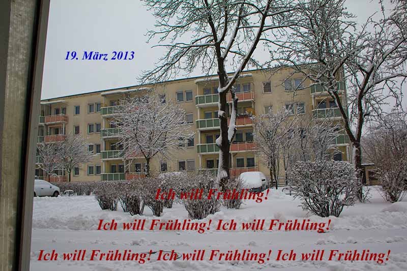 Florian, das Lied gefällt mir viel besser. Das darfst du singen! Und, vielleicht wirkt es schon. Draußen alles grün bei grauem Himmel und 4 ° plus.
