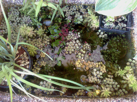 Jetzt der zweite Miniteich mit 60 l Wasser auch hier sind Wasserflöhe verscheidene Wasserschnecken Teller- Posthorn- und Spitzschlammschnecken am Werk.