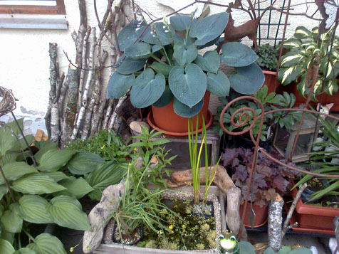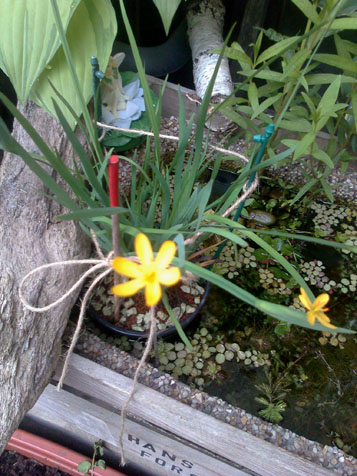 Das ist der kleinste mit ca. 25 l Wasser in dem sind Wasserflöhe und verschiedene Schnecken, meine Binsenlilie blüht am laufenden Band, leider hängt sie mehr als sie steht.