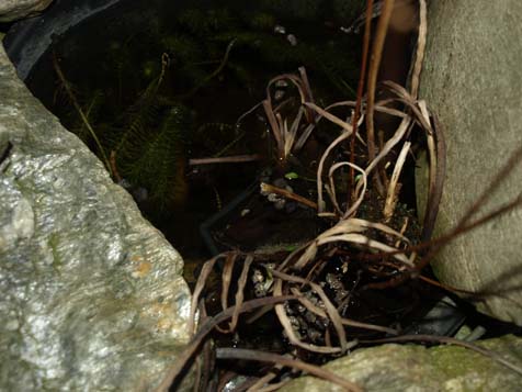 Ein Stück von der Seerose hab ich in einem Eimer separiert und werde mit der Zeit, wenn die Blätter zur Wasseroberfläche gehn immer wieder Wasser reingeben, die sitzt in spezieller Teicherde die ich über ein Jahr in den Miniteichen gestestet hatte.