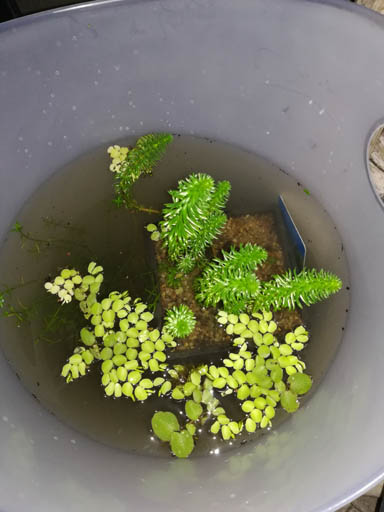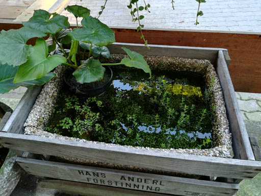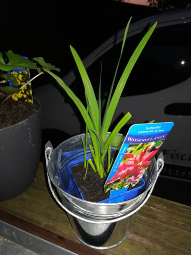 Eimer Miniteich ist ein Test, ich hab da Pflanzen in eine bestimmte Teicherde gepflanzt um zu sehn wie sich das Wasser verhält, zwecks Algen. Bis jetzt ist es Top
