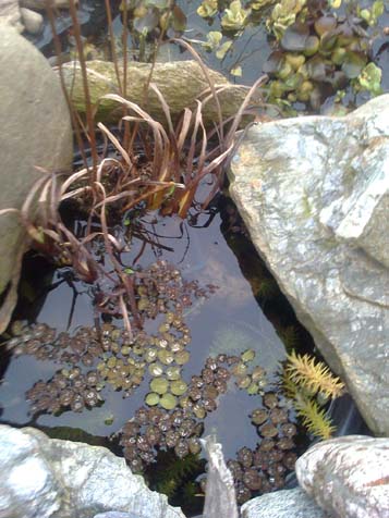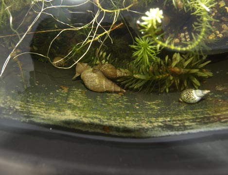 Es gibt auch Sumpfdeckelschnecken die sind aber nur nach ca. 2 Jahren in die Miniteiche einzubringen, bitte nicht vorher vom Verkäufer andrehen lassen, wenn genügend Mulm und kleinst Algen am Grund ist, sonst verhungern sie. Unterwasserpflanzen sind hier sehr wichtig.
