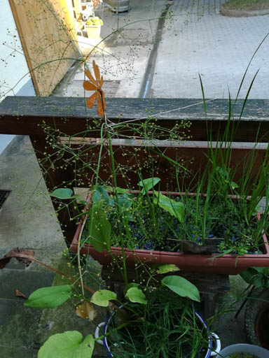 Ich hab letztes Jahr Teichpflanzen geschenkt bekommen, eigentlich wollte ich sie ja weiter verschenken aber da es schon recht spät im Herbst war sind sie erstmal bei mir geblieben und haben den Winter draußen in einer Mörtelwanne den Winter überdauert.