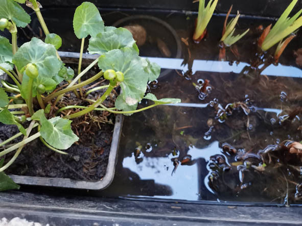 Spaltgriffel im Frühjahr, ist in Teicherde getopft ebenso die nachfolgenden Pflanzen.
