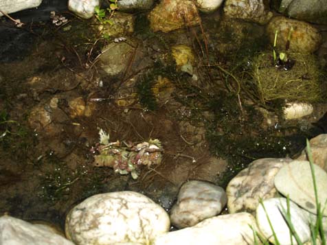 Hier in der Mitte sitzt das Pfeilkraut, die kleinen günen Spitzen sind kaum zu erkennen