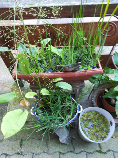 Ich dacht mir ich stell mal ein paar Bilder von meinem Miniteich und den Sumpfbecken und Töpfen rein, dann könnt Ihr a bisserl Bilder gucken
