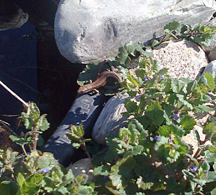 auch kommen in kürzester Zeit Taummelkäfer die sich vom pflanzlich abgestorbenen ernähren. Im Frühjahr haben sich Eidechsen am Rand von der Mörtelbütt und auf den Steinen gesonnt und die Wärme der Sonne genossen.