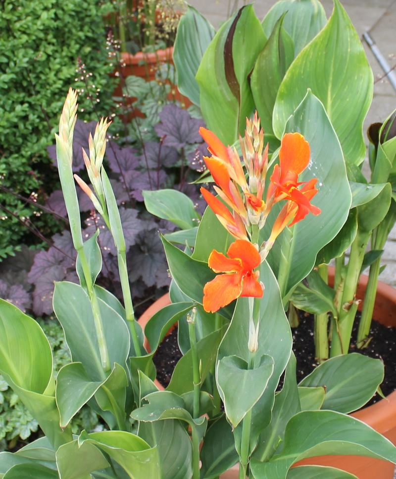 Canna Indica purpurea ist noch ein wenig hinterher,wurde aber auch viel später gepflanzt
