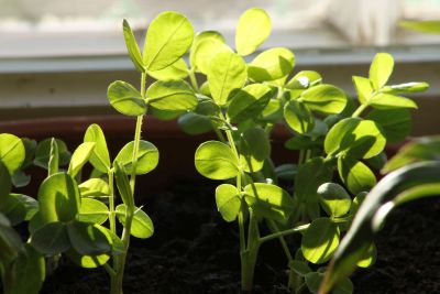 Ich habe meine Erdnusskerne eben eingetopft in Aussaaterde, die ich noch im Keller hatte.