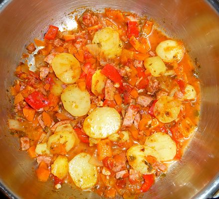 mit etwas Wasser aufgegossen - köcheln lassen - dann ist mir eingefallen Kartoffel müssen rein