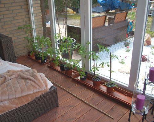 So, ich hab nun meine Tomaties, die ich erst am 3.4. gesät hatte, pikiert. Da jedes Korn aufgegangen ist bin ich bei 103 Pflanzies *umfall* Die tummeln sich nun alle auf dem Balkon, vorsichtshalber hab ich schon einen Sonnenschirm aufgestellt damit sie keinen Sonnenbrand kriegen.